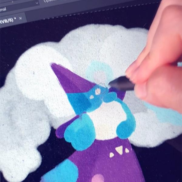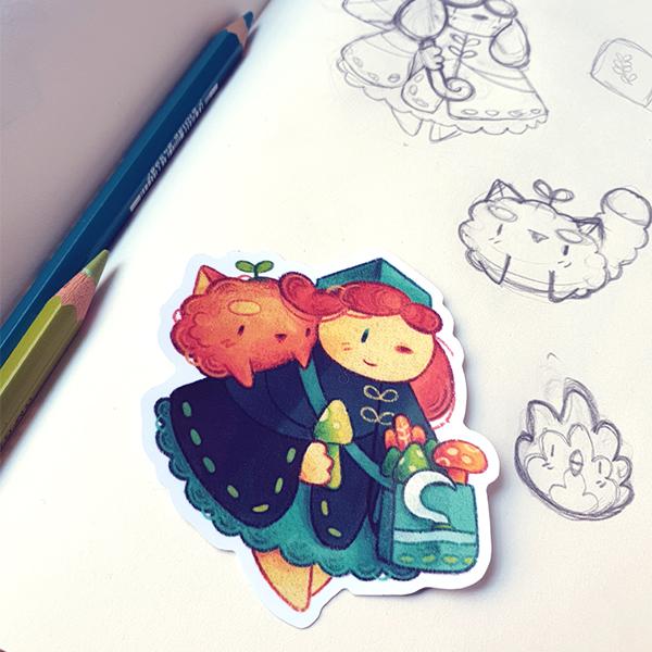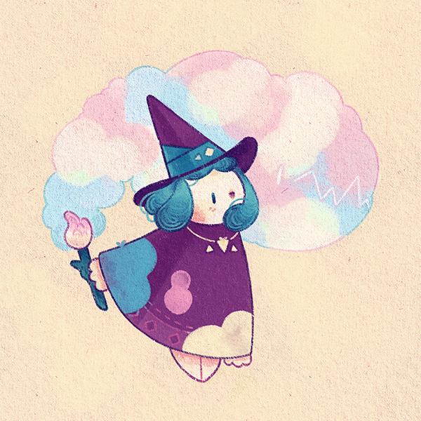 Dans mon processus artistique, je m'inspire de la nature et des animaux afin de créer un univers merveilleux où vivent créatures mignonnes et sorcières féeriques !