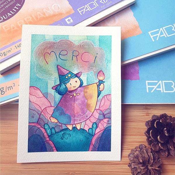Le deuxième est le traditionnel, où mes illustrations sont en général peintes à l'aquarelle puis détaillées et texturées avec des crayons de couleur. Dans ce processus je tiens toujours à utiliser du matériel vegan ✿